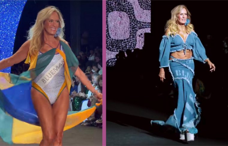 Radiante, com o chame de quem viveu a era de ouro da Bossa Nova, Helô roubou a cena ao surgir com a neta, Bruna Pinheiro. Levou à passarela toda a sua elegância atemporal e o magnetismo que inspiraram a canção brasileira mais famosa do mundo.