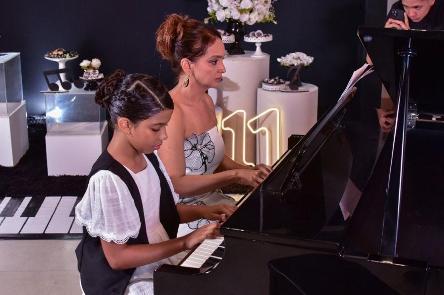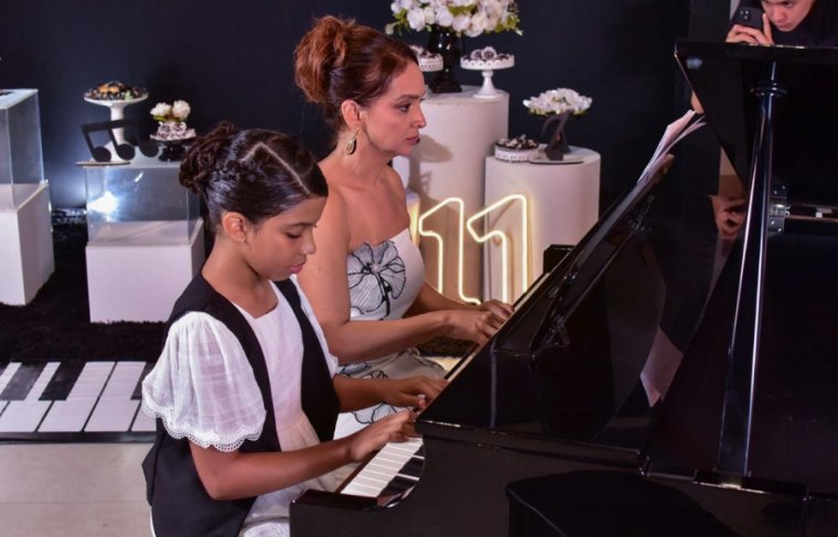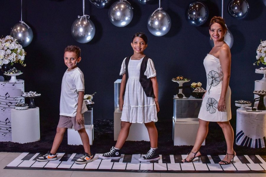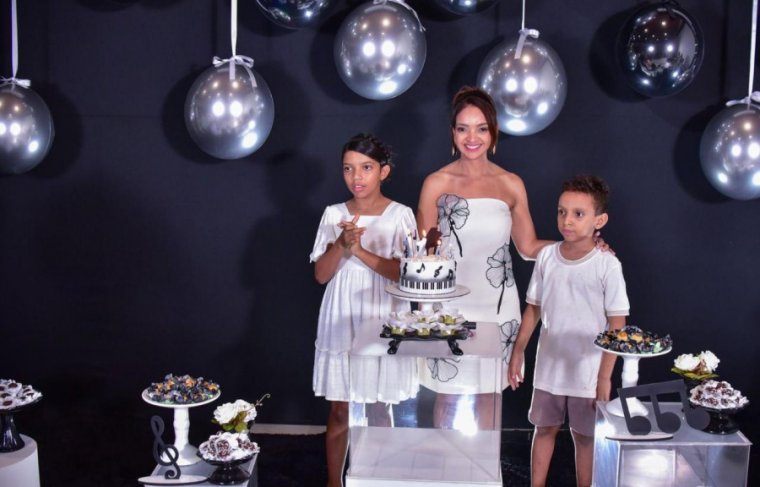 Ela estava radiante rodeada dos filhos Cecília e Gabriel. Evelling Lorena completou 45 anos e Cecília soprou 11 velinhas, na quinta-feira, 2 de outubro, no condomínio do Lago em Araguaína.