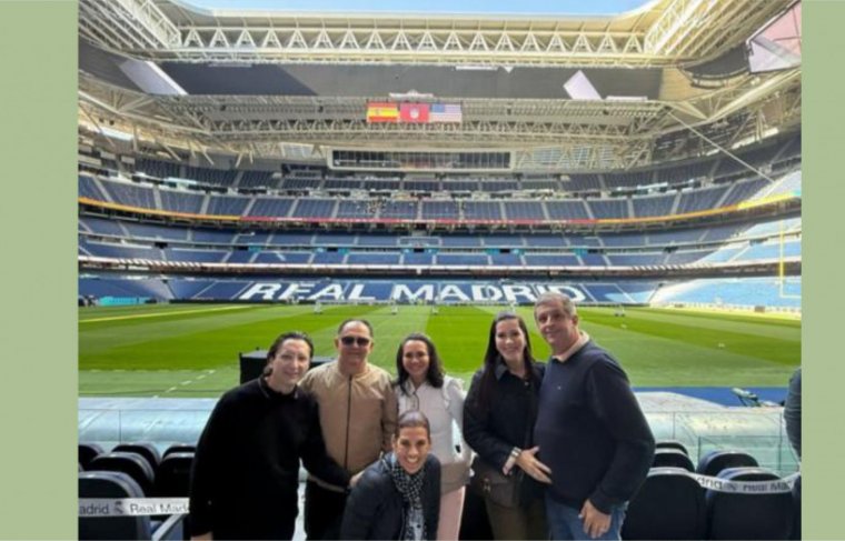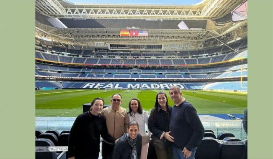 Em ritmo de puro encantamento europeu, ozamigos araguainenses, Denize, Edvaldo Campelo, Tatiana, Alexandre Remor, Elaine e Edvando Brum visitam o imponente Santiago Bernabéu, a casa do lendário Real Madrid.