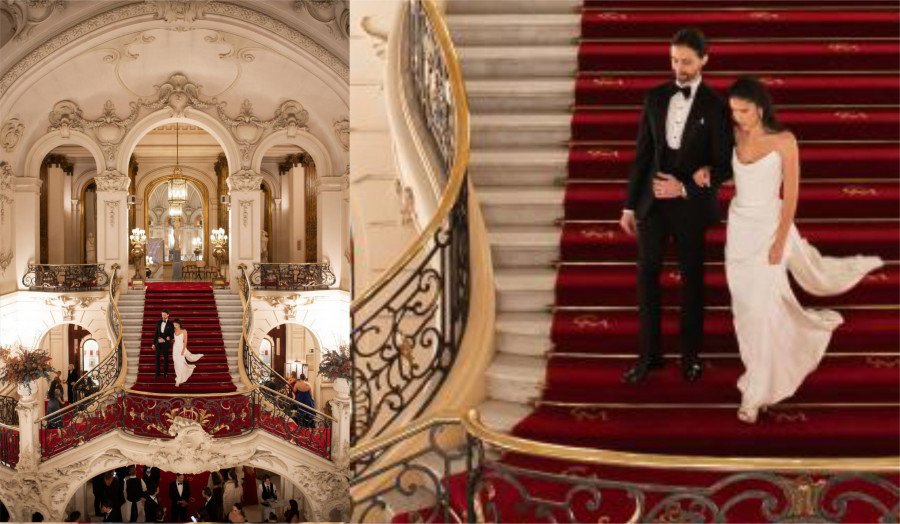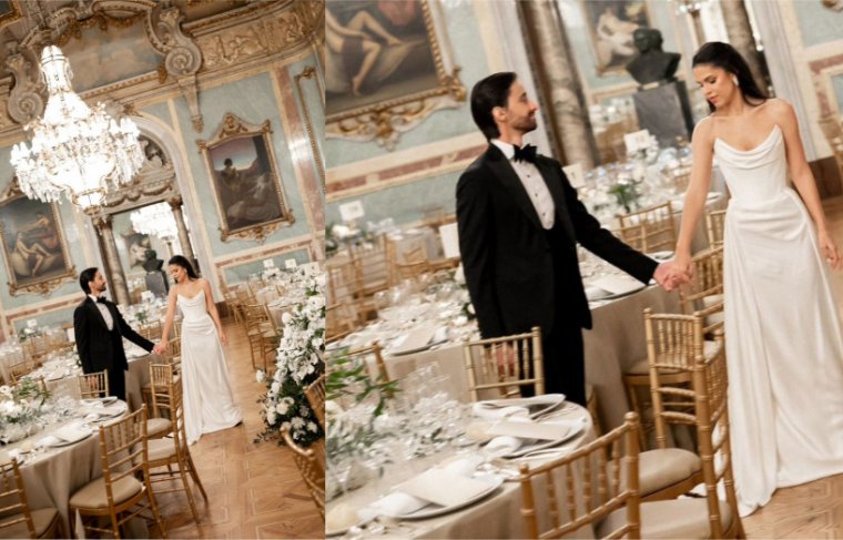 A noiva protagonizou um dos momentos mais comentados ao surgir deslumbrante em um clássico vestido by Vivienne Westwood.