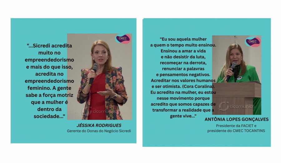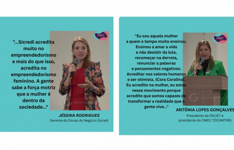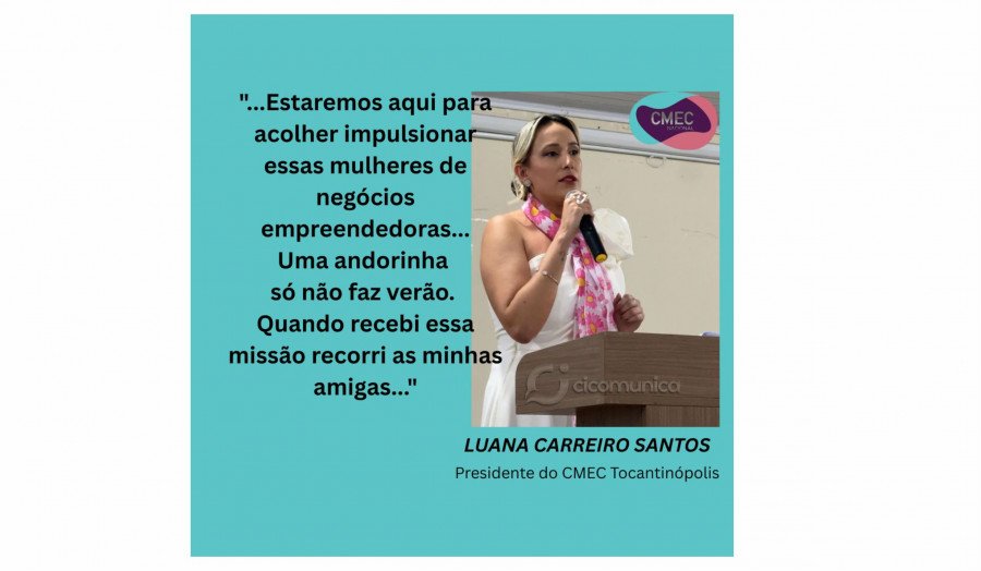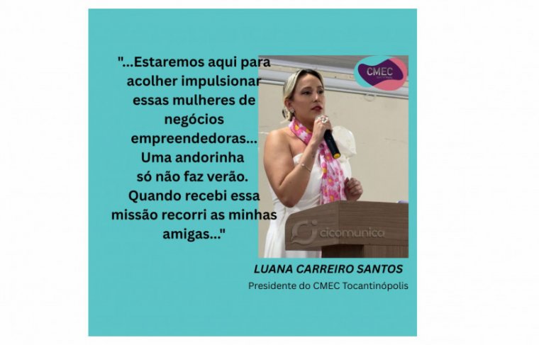 Conduzida pela presidente da FACIET e do CMECTO, Antônia Lopes Gonçalves a cerimônia de posse da presidente Luana Carreiro Santos e suas Conselheiras, marcou oficialmente a instalação do CMEC Tocantinópolis dando significado ao empreendedorismo local, reunindo mulheres de diferentes segmentos do comércio e dos serviços em torno de um só propósito comum, fortalecer, impulsionar e abrir caminhos para outras empreendedoras da cidade e da região. Declamando a poetisa Cora Coralina Antônia disse: "Eu sou aquela mulher