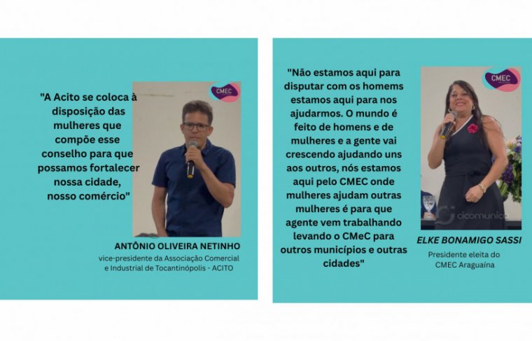 Foi momento de reconhecimento e união, as novas conselheiras assumiram o desafio de ampliar a presença feminina nos espaços de decisão, fomentar negócios liderados por mulheres e valorizar a cultura empreendedora local. O evento contou com a presença de autoridades, representantes do setor produtivo, familiares e convidados, simbolizando o apoio coletivo a essa agenda transformadora. E consolidando CMEC no Tocantins, como um importante instrumento de desenvolvimento econômico e social, dando visibilidade a força feminina como um motor essencial para o crescimento de Tocantinópolis e o Bico do Papagaio.