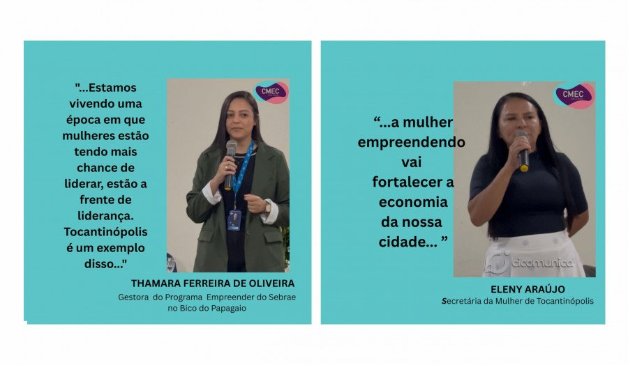 A solenidade, de posse do Conselho da Mulher empreendedora e da Cultura de Tocantinópolis reuniu mulheres engajadas no desenvolvimento do município, como a vereadora Josy Milhomem (MDB), a secretaria da Mulher de Tocantinópolis, Eleny Araújo, a presidente da Subseção da OAB, Fernanda Mesquita, a gerente do Donas do Negócio Sicredi Jéssika Rodrigues, a Gestora do Programa Empreender do Sebrae no Bico do Papagaio, Thamara Ferreira de Oliveira, as Conselheira do CMEC Araguaína, as empresárias, Mirllany Viana e Elke Bonamigo, familiares, lideranças empresariais e comunitárias da região deram tom especial à posse do primeiro CMEC do município.