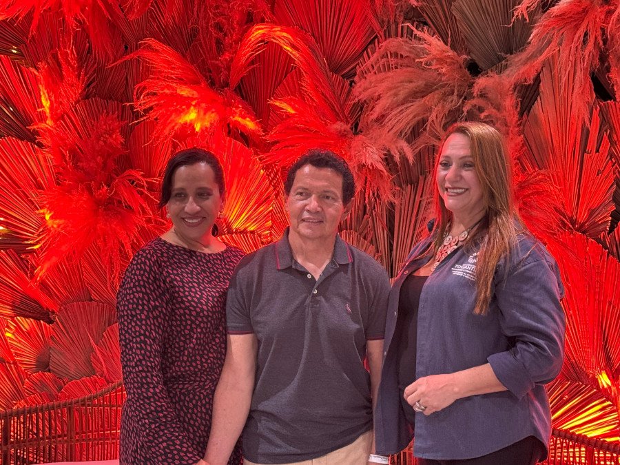 Um dos pontos altos do evento foi o encontro estratégico com a presidente da Federação das Associações Comerciais e Empresariais do Estado de Tocantins- FACIET e presidente do Conselho da Mulher Empreendedora e da Cultura do Tocantins -CMEC, Antônia Lopes Gonçalves. Em um registro cheio de cooperação, ela aparece ao lado da assessora Simone Martins, do secretário executivo Enil Henrique e da analista Alessandra Nadi, destacando a união entre o governo e a classe empresarial tocantinense.