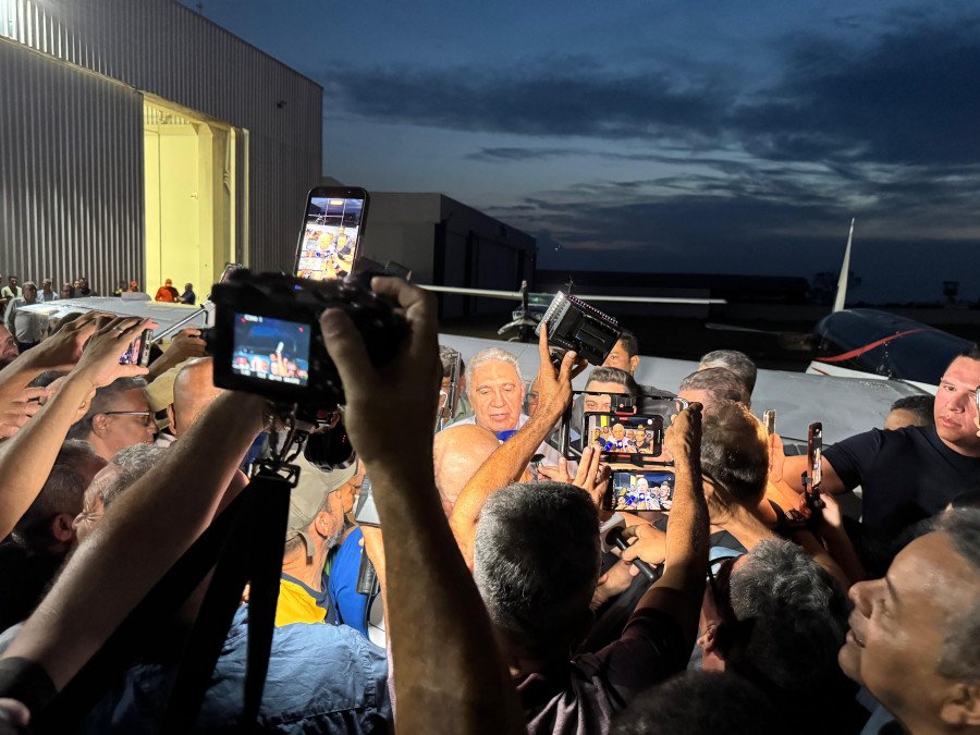 Em sua comitiva estavam o empresário da comunicação, Wanderlei Luxemburgo, o presidente do Instituto de Terras do Tocantins, Herbert Brito Barros, Raul filho e outros.