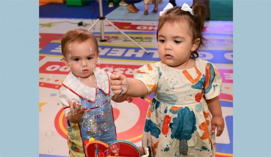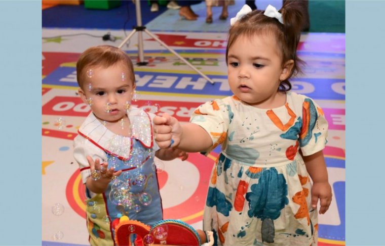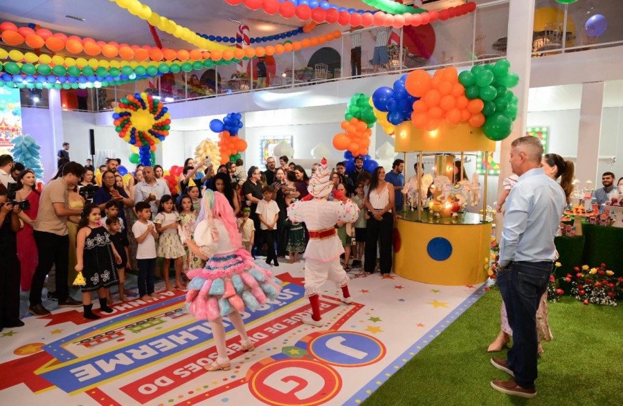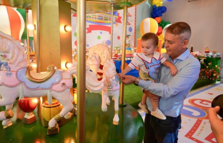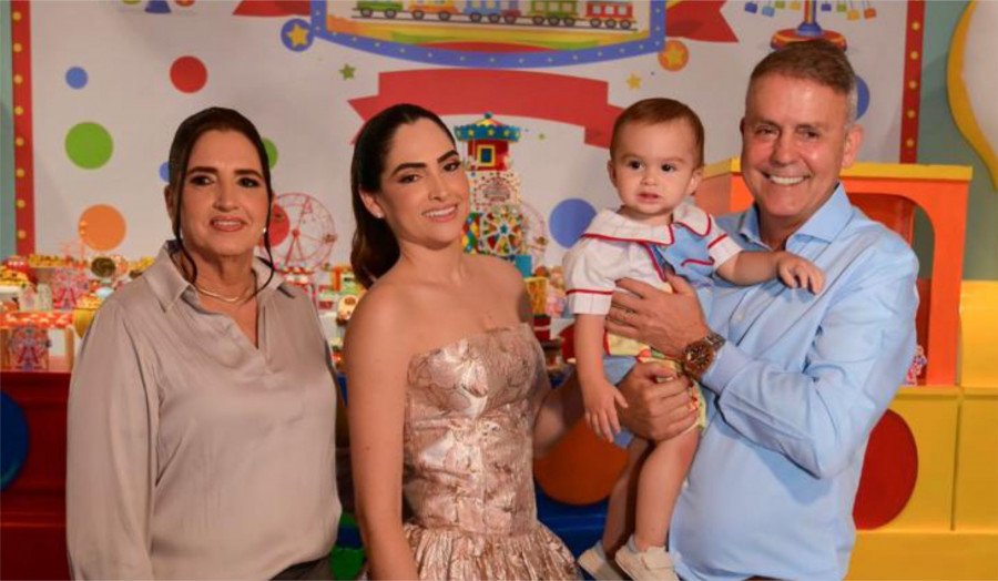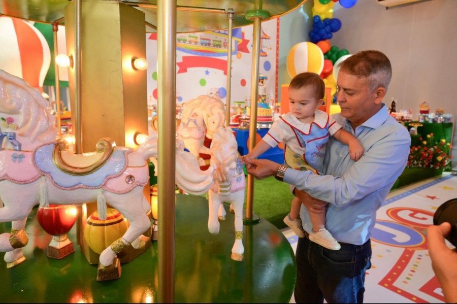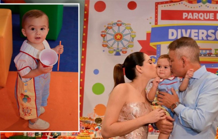 O casal recebeu familiares e convidados seletos para festejar na quarta-feira, 25, véspera do aniversário do pequeno, no Versalhes Eventos. Logo na entrada, todos eram transportados para um universo de fantasia: a decoração, impecável em cada detalhe, trouxe a nostalgia dos grandes parques, com uma paleta de cores vibrantes e suaves que deu o tom da celebração.