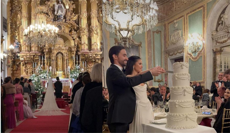 Um casamento digno da realeza tomou conta de Madrid. A celebração começou na emblemática e maravilhosa Iglesia de Las Calatravas, joia barroca da capital espanhola, onde os noivos disseram “sim” em meio a um cenário de ouro talhado, vitrais resplandecentes e um cortejo impecável. A noiva, radiante, cruzou a nave acompanhada pelo pai, Luiz Júnior, vestindo Viviane Westwood.