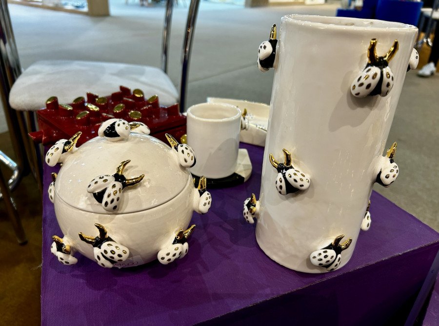 A marca carioca Dani Enne, criada durante a pandemia, destaca essa proposta com peças artesanais em cerâmica, marcadas por cores intensas e formas expressivas. A empresa aposta na estética autoral como forma de se diferenciar em um mercado saturado de neutralidade, transformando objetos utilitários em peças de design colecionáveis — algumas, inclusive, presentes na casa do Big Brother Brasil. Nesta edição da feira, a marca apresentou novas criações inspiradas no universo animal e em joias reinterpretadas em cerâmica.