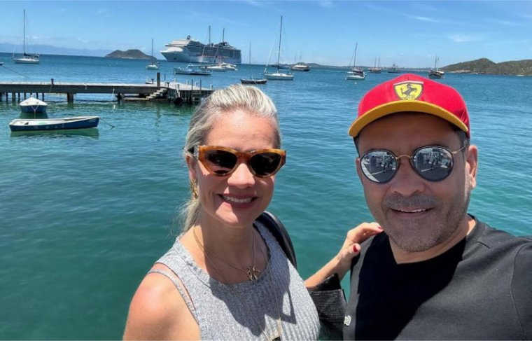 Nos retratos: Fernanda e Quezado no Rio de Janeiro na Praia de João Fernandes em Búzios. Ele no Cristo Redentor e no autódromo de interlagos.