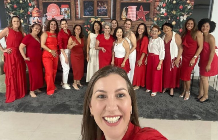Selfie especial da presidente da Liga Feminina de Combate ao Câncer de Gurupi, Rose Goiabeira marcou a confraternização. A Liga reuniu suas integrantes para uma noite de sábado, 6, inesquecível, celebrada entre abraços, sorrisos e a tradicional amiga secreta, sempre aguardado com carinho por todas.