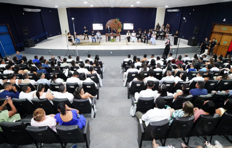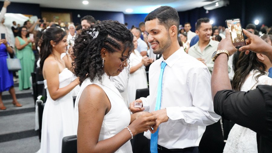 A desembargadora Ângela Prudente, que coordenou o evento, não escondeu a emoção ao ver o auditório lotado de famílias. Segundo ela, o casamento é o símbolo máximo de inclusão, garantindo que o direito de ter uma família protegida seja para todos. “Este casamento é o símbolo máximo de inclusão. Ele retira da invisibilidade o sentimento mais nobre, garantindo que o direito de constituir uma família seja pleno e protegido pelo Estado”, declarou a desembargadora em discurso, no encerramento da celebração, no qual disse ter se emocionado por ver o “brilho nos olhos” dos casais. “Vocês não estão apenas mudando o estado civil. Estão reafirmando compromisso de parceria, de cuidado e de lealdade perante a vida de vocês, dos familiares e da sociedade”, destacou Ângela Prudente.