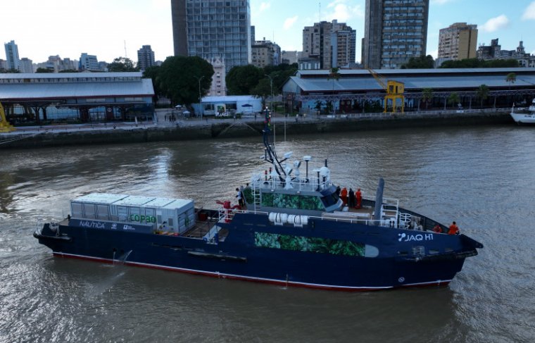 Com 36 metros de elegância tecnológica e um auditório para 40 pessoas, o JAQ H1 permanecerá ancorado em Belém até o encerramento da COP30, antes de iniciar, em janeiro de 2026, uma jornada educativa pelos portos brasileiros. O circuito culminará em 2027 com o lançamento do JAQ H2, uma embarcação de 50 metros 100% movida a hidrogênio e capaz de gerar sua própria energia a partir da água. um marco na economia verde mundial.