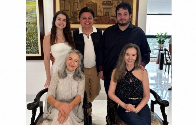 Em um carrossel cheio de cumplicidade, Alexandre apareceu ao lado da família Neves (Kátia, Maria, Gustavo e Isadora), festejando a estética e a alma do Hotel Relicário.
