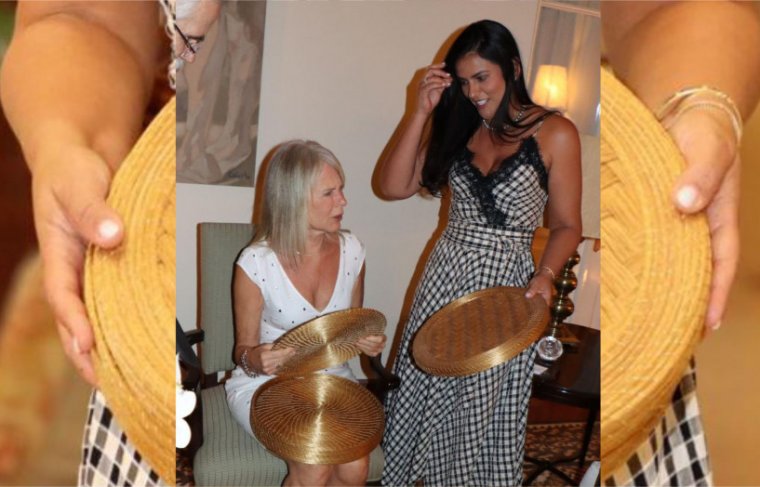 Em visita oficial à residência da Embaixada do Brasil na última quinta-feira (12), Karynne presenteou a embaixatriz Patrícia Calisto com uma delicada peça de capim dourado.