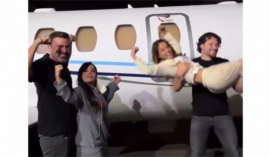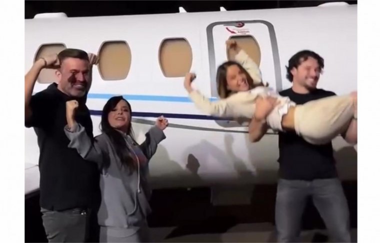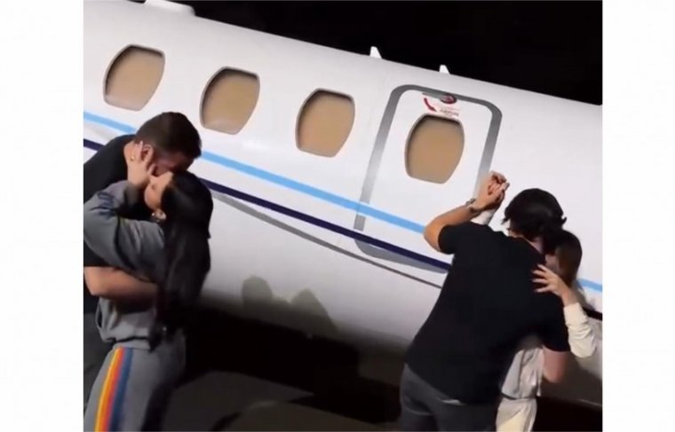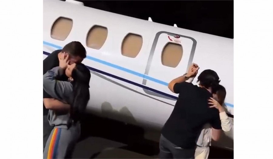 Tudo isso aconteceu na pista do aeroporto, tendo como pano de fundo o imponente jatinho da dupla, já pronto para a próxima decolagem.