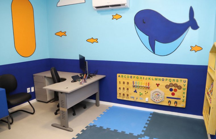 Entre os destaques da nova sede está a delicada e necessária Sala Azul, especialmente desenvolvida para acolher crianças neurodivergentes um gesto que destaca o compromisso do Estado com um serviço público sensível e humanizado.
