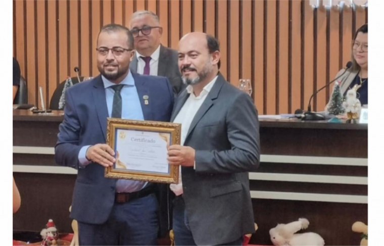 Ele recebeu na quarta-feira, 12/11, a honraria das mãos do vereador Railson Rodrigues em cerimônia, marcada por emoção e cordialidade, celebrando a amizade construída ao longo dos anos entre Sandoval (ex-deputado estadual e ex-governador) e o município, que o acolhe agora como filho honorário.