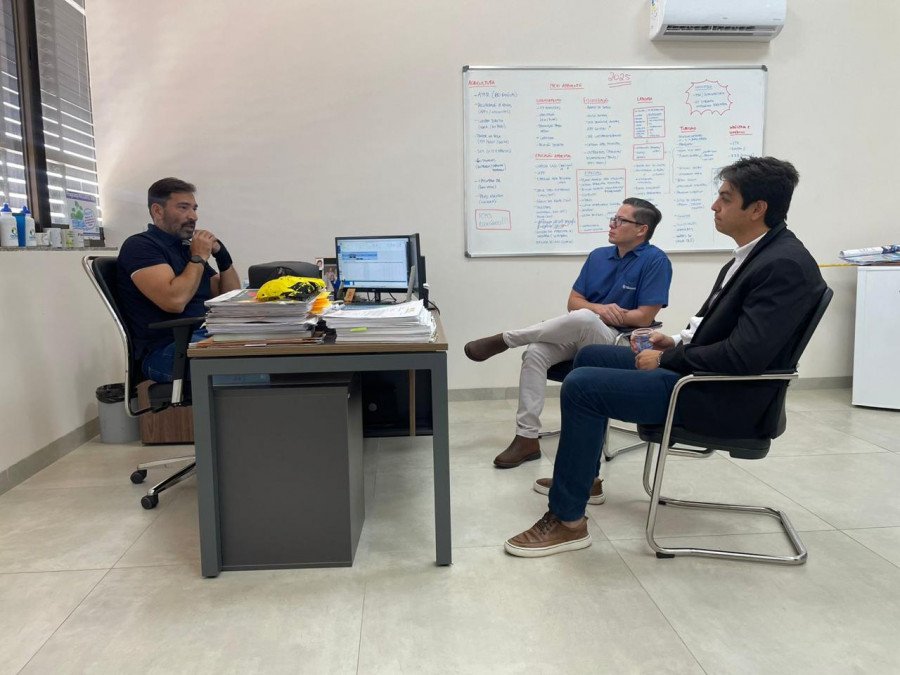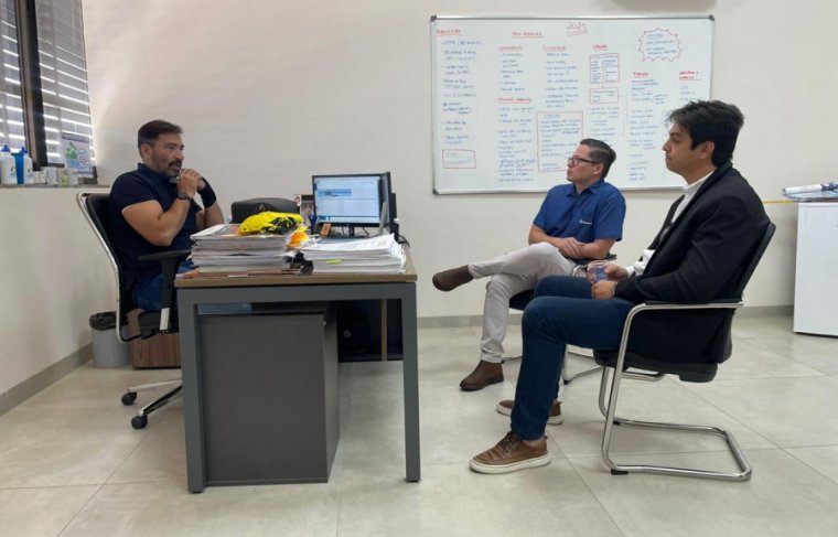 Os representantes da Cooperativa Sicredi Diego Roberto Pirolo dos Reis (gerente Regional Centro Norte), Romildo Pereira de Melo Silva (gerente da Agenda José de Brito) e Áudila Souza (gerente exclusiva da carteira Donas do Negócio) visitaram a Secretaria Municipal de Desenvolvimento Econômico, Agricultura, Meio Ambiente e Turismo de Araguaína (SEDEMAT).