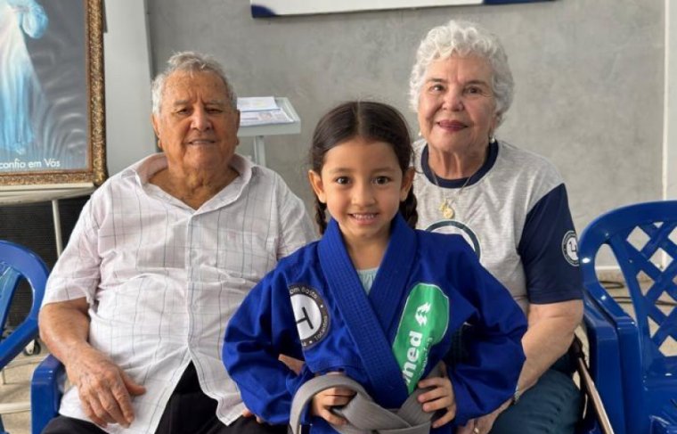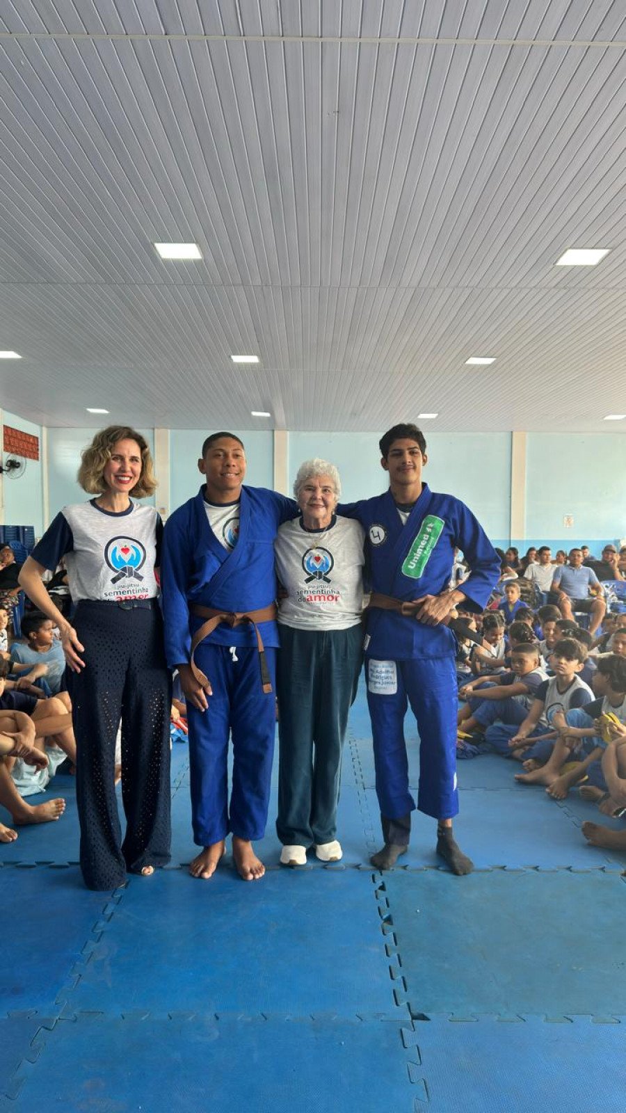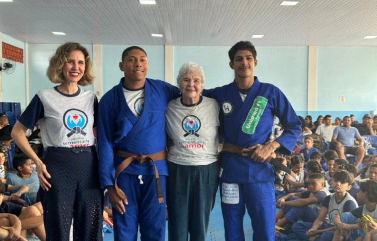 Sob o olhar carinhoso dos fundadores Terezinha e Adolfo Rodrigues Borges, do respeitado Mestre Ivanildo Feinho, dos campeões Bryan Fagundes e Jeverson Dantas, além de pais e mães orgulhosos, a presidente do Projeto Sementinha do Amor, dra. Adalgeli Rodrigues Blois, celebrou no sábado, 29/11, a emocionante graduação de 88 jovens atletas de Jiu-Jitsu, entre crianças e adolescentes atendidos pelo SA.