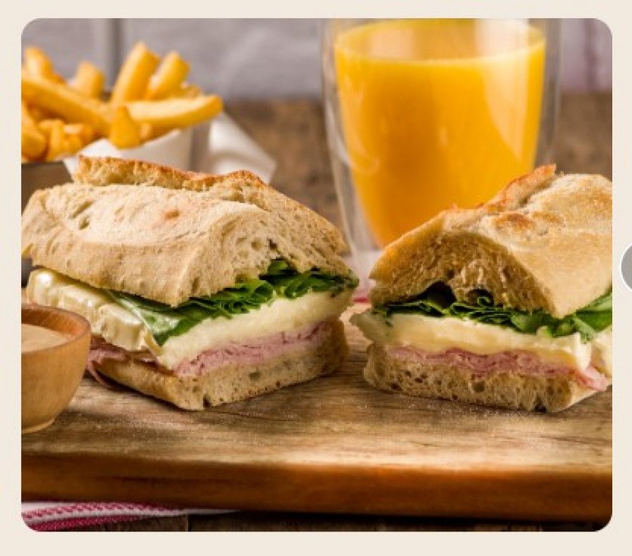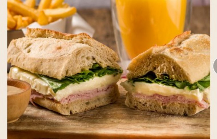 Sanduíche de presunto royale, Queijo Brie Cremíssimo Tirolez, rúcula e mostarda dijon.