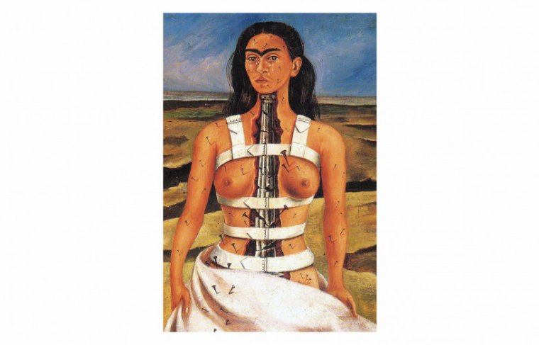 O que se vê ao olhar o autorretrato de Frida Kahlo com colete de aço e torso enfaixado… Ao observar Frida Kahlo enfaixada, eu vejo além da artista pintando a si mesma: vejo a alma de uma mulher expondo sua dor com coragem e arte. No quadro, Frida aparece com o corpo envolto por faixas, como se estivesse tentando manter unidos os pedaços que a vida insistiu em quebrar. Os ferimentos físicos revelam marcas de perdas, medos e lembranças que lhe pesaram a alma.